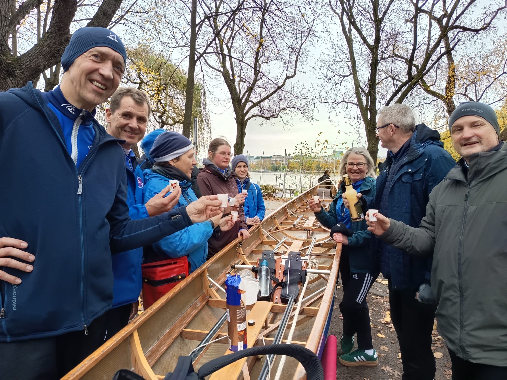 Als Saisonabschluss 2025 stand der FariCup am 01.November auf dem Kalender. Über 1500 Sportler in verschiedenen Booten der 4er und 8er Klasse messen ihre Kräfte auf der Alster. Und der PRC mittendrin. Unsere Mannschaften konnten leider keinen Sieg einfahren, trotzdem waren alle mit den erreichten Zeiten zufrieden. Zur Belohnung gab es zum Schluss noch leckeren Eierlikör von Holger.